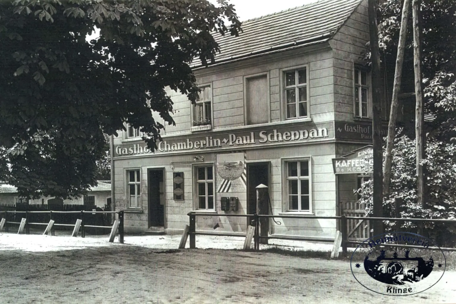Am 6. Juni 1927 landete der amerikanische Luftfahrtpionier Clarence Chamberlin nach einer dramatischen Notlandung in Klinge. Zuvor hatte er den Atlantik in einem Nonstop-Flug überquert. Dieser Vorfall machte weltweit Schlagzeilen und wurde zu einem bedeutenden Ereignis in der Geschichte der Luftfahrt. Zur Ehrung dieses historischen Moments und als bleibendes Andenken an Chamberlins Mut und Entschlossenheit, benannte Paul Scheppan, der Eigentümer des Gasthauses, die Gaststätte um. Sie wurde fortan als „Gasthof Chamberlin“ geführt, ein Name, der eine symbolische Verbindung zu Chamberlins Namen und seiner landesweiten Bekanntschaft herstellte.